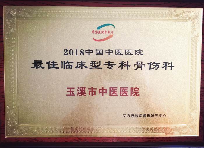 榮獲2018中國中醫(yī)醫(yī)院最佳臨床型專科骨傷科稱號