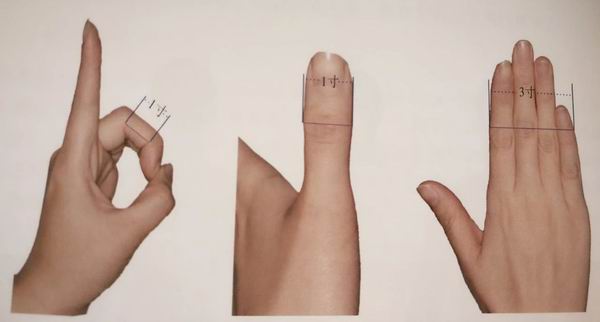 (3)陽溪:屈肘,掌心向胸,陽溪穴在腕關(guān)節(jié)橈側(cè),拇指向上翹時,當(dāng)拇短伸肌腱與拇長伸肌腱之間的凹陷中。