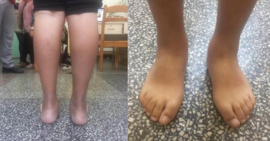 近期,玉溪市中醫(yī)醫(yī)院小兒骨科收治了一名11歲的雙側(cè)復(fù)雜僵硬性扁平足患者?;颊呒覍侔l(fā)現(xiàn)患兒雙側(cè)扁平足多年,近1年多來(lái)左足站立及行走疼痛明顯加重,并且隨疼痛行走出現(xiàn)跛行,扁平足癥狀越來(lái)越明顯。為了使孩子能像正常的同齡人一樣生活學(xué)習(xí),父母帶著孩子多處多次就診,保守治療效果不理想,近期來(lái)到玉溪市中醫(yī)醫(yī)院尋求治療。