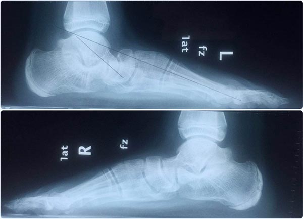上圖為患者扁平足負(fù)重位外觀