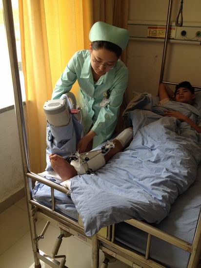骨傷科創(chuàng)建于2001年,現(xiàn)有醫(yī)師23人,其中主任醫(yī)師1人,副主任醫(yī)師6人,副教授5人,主治醫(yī)師8人,住院醫(yī)師8人;護(hù)士44人,其中主管護(hù)師10人,護(hù)師7人??剖曳譃楣莻埔弧⒍?、三、四病區(qū)(注:一病區(qū)暫未開放),目前二、三、四病區(qū)實(shí)際開放床位140張,一病區(qū)開放后預(yù)計(jì)開放床位180張。