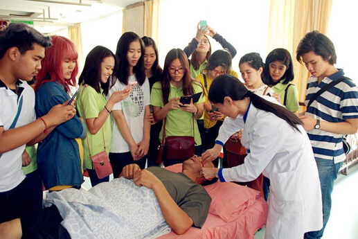 為加強(qiáng)國(guó)際交流互動(dòng),體現(xiàn)現(xiàn)代化醫(yī)院管理模式和高水平的臨床教學(xué)管理能力,2015年6月12日在玉溪師范學(xué)院學(xué)習(xí)漢語(yǔ)言的泰國(guó)崇圣華僑大學(xué)中醫(yī)學(xué)院的20多名學(xué)生到我院學(xué)習(xí)交流。