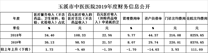 玉溪市中醫(yī)醫(yī)院2019年度財務(wù)信息公開
