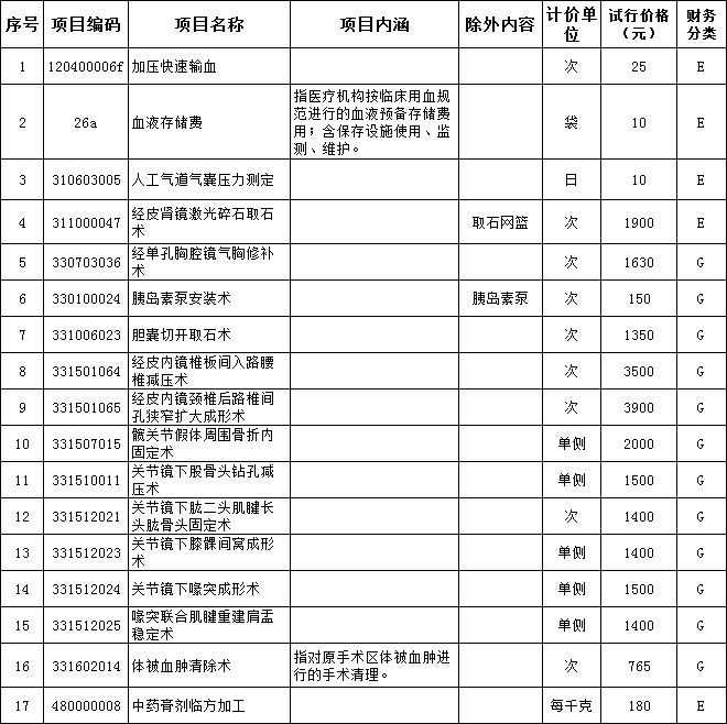 根據(jù)云南省衛(wèi)生健康委 云南省醫(yī)療保障局關(guān)于《云南省2020年新增醫(yī)療服務(wù)價格項目的通知》(云衛(wèi)財務(wù)發(fā)【2020】47號)文件精神,我院本著公平、合法和誠信的原則對“加壓快速輸血”等17個醫(yī)療服務(wù)項目制定了試行價格,詳見下表?,F(xiàn)對試行價格進行公示,公示期7天,公示期間如有意見和建議,請聯(lián)系價格監(jiān)督電話:0877-2079575,價格舉報電話:12358。