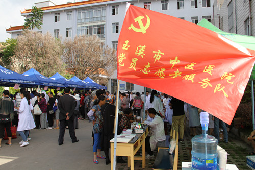 8:30分,醫(yī)院黨員志愿服務(wù)隊(duì)隊(duì)員剛一下車,就看到峨山縣中醫(yī)醫(yī)院院區(qū)內(nèi)匯集了近500余人等待義診的群眾。隊(duì)員們馬上進(jìn)入診臺(tái)開始為他們采血、驗(yàn)血,進(jìn)行糖尿病篩查,通過(guò)診舌號(hào)脈、體格檢查,開處中西藥處方、針灸、推拿等治療,并解答他們的健康疑問(wèn),為他們提供診療意見(jiàn),進(jìn)行健康指導(dǎo),普及健康知識(shí)。