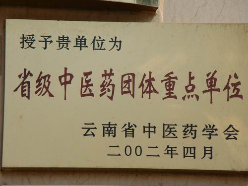 二00二年云南省中醫(yī)藥學(xué)會(huì)授予我院為省級中醫(yī)藥團(tuán)體重點(diǎn)單位