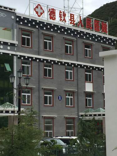 經(jīng)過大約5個(gè)小時(shí)左右的迂曲山路,我終于到達(dá)了本次開展對(duì)口幫扶的目的地——德欽縣人民醫(yī)院。醫(yī)院所在的小城坐落在山溝里,狹長而陡峭,湛藍(lán)的天空就罩在頭頂上,放眼望去,美麗的梅里雪山靜靜的守候在那里。醫(yī)院嶄新而清靜,獨(dú)特的藏式黑色窗框令人印象深刻。
