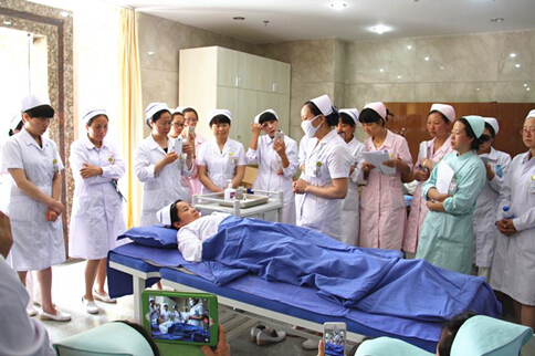 競(jìng)賽現(xiàn)場(chǎng),各參賽選手面對(duì)模擬病人從語言到動(dòng)作都始終保持著嚴(yán)謹(jǐn)認(rèn)真的態(tài)度,將“交流”和“人性化”貫穿于整個(gè)護(hù)理競(jìng)賽中,實(shí)現(xiàn)了全真模擬臨床護(hù)理操作。比賽過程中,選手們沉著冷靜、有條不紊,認(rèn)真完成每一個(gè)操作步驟,動(dòng)作嫻熟優(yōu)美、語言輕柔,真正讓“患者”置身于親切、自在、放松的治療環(huán)境中,使在場(chǎng)的觀眾全然感受不到比賽的緊張、激烈,完全沉浸在“白衣天使”們的風(fēng)采中。