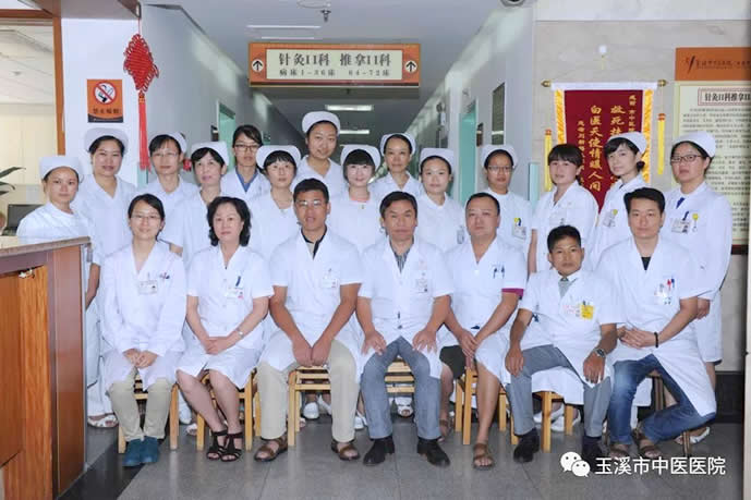 玉溪市中醫(yī)醫(yī)院推拿科是目前云南省技術(shù)力量較為雄厚的針灸推拿??疲鞘≈攸c中醫(yī)???。科室充分發(fā)揮中醫(yī)特色治療優(yōu)勢,設(shè)置有針灸治療室、中藥薰蒸室、艾灸室、康復(fù)理療室、??蒲芯渴摇?剖以鴺s獲“中醫(yī)特色獎”、“先進護理單元”、“新技術(shù)新業(yè)務(wù)獎”、“先進集體獎”“昆明醫(yī)科大學(xué)第一附屬醫(yī)院骨質(zhì)疏松與骨礦鹽疾病診治聯(lián)盟成員單位”“云南省小兒推拿聯(lián)盟副會長單位”等榮譽,通過了優(yōu)質(zhì)護理病區(qū)驗收,三甲醫(yī)院復(fù)審等工作??剖彝怀鰝鹘y(tǒng)針灸特色,擅長以中醫(yī)經(jīng)絡(luò)學(xué)說為指導(dǎo),配合現(xiàn)代醫(yī)學(xué)知識和檢測手段,綜合針灸、推拿、康復(fù)、理療的技術(shù)優(yōu)勢,開展特色診療服務(wù)(包括體針、頭針、耳針、腹針、浮針、水針、火針、小針刀、放血療法、整脊、推筋、正骨治療、隔物灸、雷火灸、拔罐、中藥濕熱敷、中藥熏洗、穴位貼敷、中藥封包、中藥薰藥、牽引、中醫(yī)定向透藥、中低頻治療、氣壓治療、蠟療、超短波治療)等。在腰椎間盤突出癥、頸椎病、骨質(zhì)疏松癥、中風(fēng)后遺癥、面神經(jīng)麻痹、肩周炎、膝骨性關(guān)節(jié)炎、血管神經(jīng)性頭痛、失眠、網(wǎng)球肘、腱鞘炎、運動損傷和關(guān)節(jié)紊亂、肥胖癥、內(nèi)分泌失調(diào)、消化系統(tǒng)疾病、亞健康狀態(tài)的治療方面取得了明顯的效果,收到良好的社會效益。科室自制足浴冷痛方運用于痛風(fēng)、足浴熱痛方運用于風(fēng)濕痹痛、濕熱敷方、穴位貼敷方運用于面癱,膝骨性關(guān)節(jié)炎、足跟痛等,時間短,見效快,為病人提供了較好的治療護理服務(wù)。