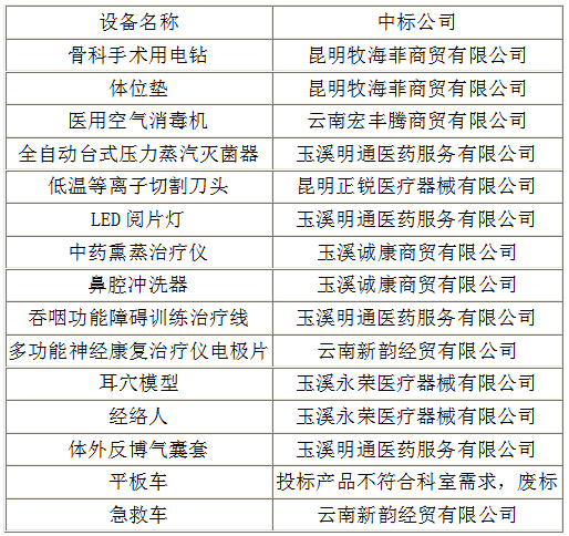 我院采用院內(nèi)競(jìng)爭(zhēng)性談判的方式對(duì)院內(nèi)小設(shè)備進(jìn)行采購(gòu), 現(xiàn)將第三批中標(biāo)情況公布如下: