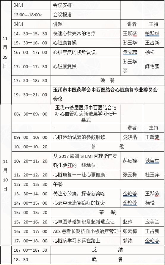 在玉溪市紅塔區(qū)環(huán)山路鑫興商業(yè)城1幢C座玉昆城市酒店一樓大廳報(bào)到。(注:11月9日19:30召開玉溪市中醫(yī)藥學(xué)會(huì)中西醫(yī)結(jié)合心臟康復(fù)專業(yè)委員會(huì)會(huì)議)