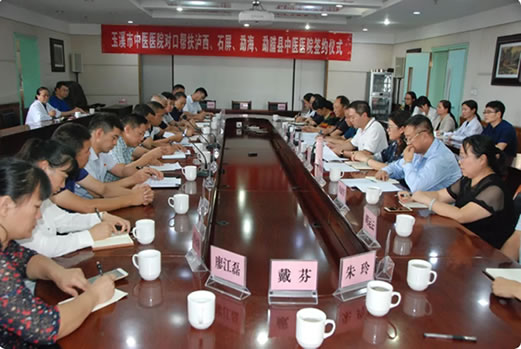 按照黨中央、國務院關于打贏脫貧攻堅戰(zhàn)的決策部署,為貫徹落實國家中醫(yī)藥管理局、國務院扶貧辦《關于印發(fā)加強三級中醫(yī)醫(yī)院對口幫扶貧困縣縣級中醫(yī)醫(yī)院工作方案的通知》精神,推進對口幫扶工作落到實處,7月24日,勐海、勐臘、石屏、瀘西縣縣政府、縣衛(wèi)生健康局、縣中醫(yī)醫(yī)院一行21人到玉溪市中醫(yī)醫(yī)院參觀交流,簽定幫扶合作協議。