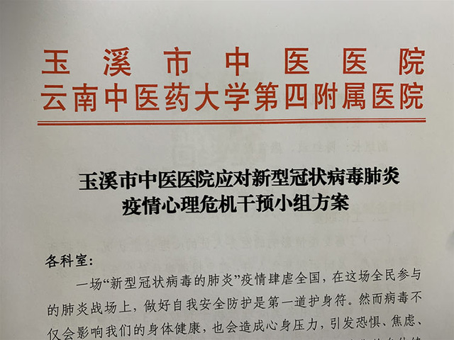 玉溪市中醫(yī)醫(yī)院成立應(yīng)對新型冠狀病毒肺炎疫情心理危機干預(yù)小組,由醫(yī)院副院長、精神科主任醫(yī)師、中級心理治療師、沙盤游戲心理治療師劉瓊擔(dān)任組長,共有6名心理專家組成了心理咨詢團隊,免費為市民和醫(yī)務(wù)人員提供心理健康咨詢服務(wù)。心理危機干預(yù)小組將充分發(fā)揮專業(yè)優(yōu)勢,積極為民眾提供規(guī)范的心理援助服務(wù)。