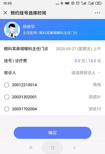 核對醫(yī)生信息、時間以及就診人信息,確保無誤,點擊確定,支付相關費用