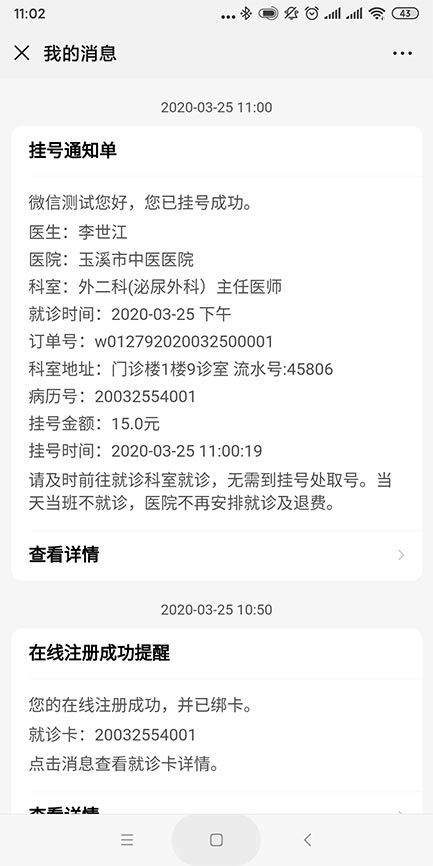 費用支付完成后手機會收到掛號通知單,前往醫(yī)生診室候診即可