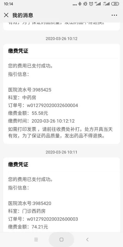 直接手機進行支付,支付完成之后會推送繳費憑證,拿就診卡或者手機到相應的科室進行檢查或者到藥房拿藥即可