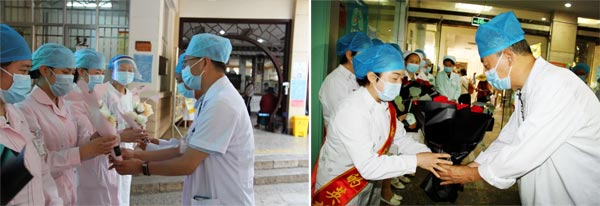 慰問中,院領(lǐng)導同護理人員進行親切的交談,送上慰問和祝福,與他們合影留念,感謝他們在護理崗位上的默默付出,為我院護理事業(yè)發(fā)展所做出的貢獻。醫(yī)院到處充滿著節(jié)日的喜慶氣氛。