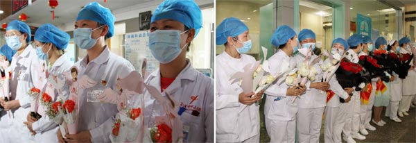 在工作崗位上,她們與病痛相連,與疲憊為伴,為病人夜以繼日守護平安。脫下白色制服的她們,其實也只是一群平凡的女孩,院領(lǐng)導的慰問讓他們像個手舞足蹈的孩子,臉上是掩飾不住的喜悅。讓這個往日單調(diào)忙碌的護士站,增添了溫情和感動。