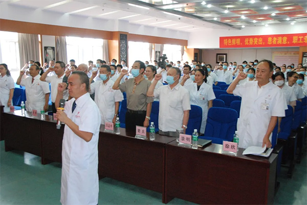 “我宣誓:我志愿獻(xiàn)身人類的健康事業(yè),自覺維護(hù)醫(yī)學(xué)的尊嚴(yán)和神圣……”在景明院長的帶領(lǐng)下,全體醫(yī)師們莊嚴(yán)地重溫了《中國醫(yī)師宣言》。雄壯高昂的聲音,震撼了每一個(gè)人的心靈,讓大家再次堅(jiān)定了投身醫(yī)療事業(yè)、維護(hù)醫(yī)學(xué)神圣,服務(wù)患者、尊重生命的決心!