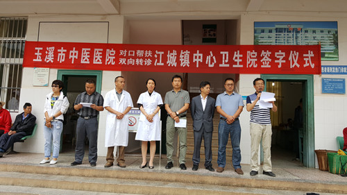 近日,為契合老百姓看病需求,我院特地選擇了江川江城鎮(zhèn)人多熱鬧的趕集天。在楊玲院長的帶領下,心病科、內分泌科、脾胃病科、泌尿外科、針灸推拿科共17位專家到江川江城鎮(zhèn)衛(wèi)生院開展“五進”大型義診活動,使醫(yī)院服務基層的覆蓋面進一步擴大,也將“五進活動”引向深入。同時與江城鎮(zhèn)中心衛(wèi)生院簽訂了對口幫扶、雙向轉診協(xié)議書。活動得到了江川區(qū)政府、江川區(qū)衛(wèi)計局的高度重視,江川區(qū)政府副區(qū)長周福榮親臨義診現(xiàn)場并出席對口幫扶、雙向轉診協(xié)議的簽訂儀式。