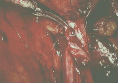 在科室主任李世江的帶領(lǐng)下,步步為營進(jìn)行手術(shù)攻堅(jiān),顯露腎盂及上段輸尿管,向下游離下腔靜脈并明確輸尿管和下腔靜脈之關(guān)系。于近端輸尿管轉(zhuǎn)向處離斷輸尿管,將下腔靜脈后段輸尿管一位置下腔靜脈前面進(jìn)行端端吻合。