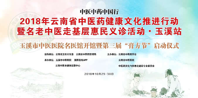 由云南省衛(wèi)生計生委、云南省中醫(yī)藥管理局指導(dǎo),云南省中醫(yī)藥學(xué)會、云南省中醫(yī)醫(yī)院、中醫(yī)藥文化與信息化建設(shè)專業(yè)委員會主辦,玉溪市中醫(yī)醫(yī)院、云南中醫(yī)全媒體運(yùn)營中心承辦的2018年云南省中醫(yī)藥健康文化推進(jìn)行動暨名老中醫(yī)走基層惠民義診活動·玉溪站將于10月29日-10月30日在玉溪市中醫(yī)醫(yī)院啟動。