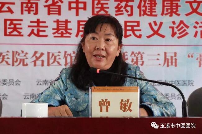 最后,玉溪市人民政府副市長曾敏指出,此次活動對于普及中醫(yī)藥健康文化知識,提升群眾中醫(yī)藥健康文化素養(yǎng),擴大中醫(yī)藥社會影響,營造關(guān)心支持中醫(yī)藥振興發(fā)展的良好氛圍具有重要的意義,她希望醫(yī)院的醫(yī)務(wù)工作者緊緊抓住這次寶貴的學(xué)習(xí)機會,潛心取經(jīng)、向各位專家虛心求教。同時,她指出,玉溪市中醫(yī)醫(yī)院是我們地州級中醫(yī)醫(yī)院中最早的老牌三級甲等中醫(yī)醫(yī)院,專家眾多、服務(wù)到位、貼近群眾,以突出的中醫(yī)特色優(yōu)勢、精湛的醫(yī)療技術(shù)、優(yōu)良的服務(wù)質(zhì)量和優(yōu)美的醫(yī)療環(huán)境,受到了社會各界群眾的普遍認可和贊譽。希望中醫(yī)院進一步把省內(nèi)中醫(yī)藥人才力量整合到一起,為玉溪市民提供更為優(yōu)質(zhì)、更高品質(zhì)的中醫(yī)醫(yī)療服務(wù)。也希望中醫(yī)院繼續(xù)發(fā)揮龍頭作用,做好中醫(yī)醫(yī)聯(lián)體建設(shè)的工作,將全市的中醫(yī)藥水平提高一個新高度。