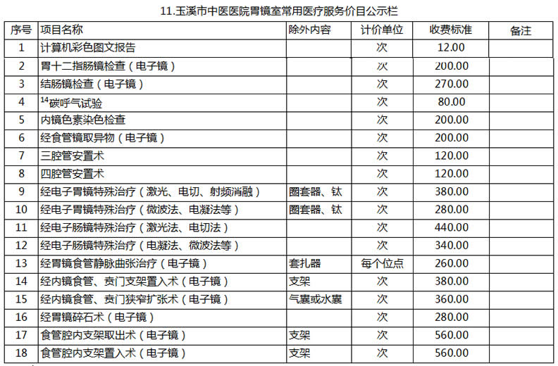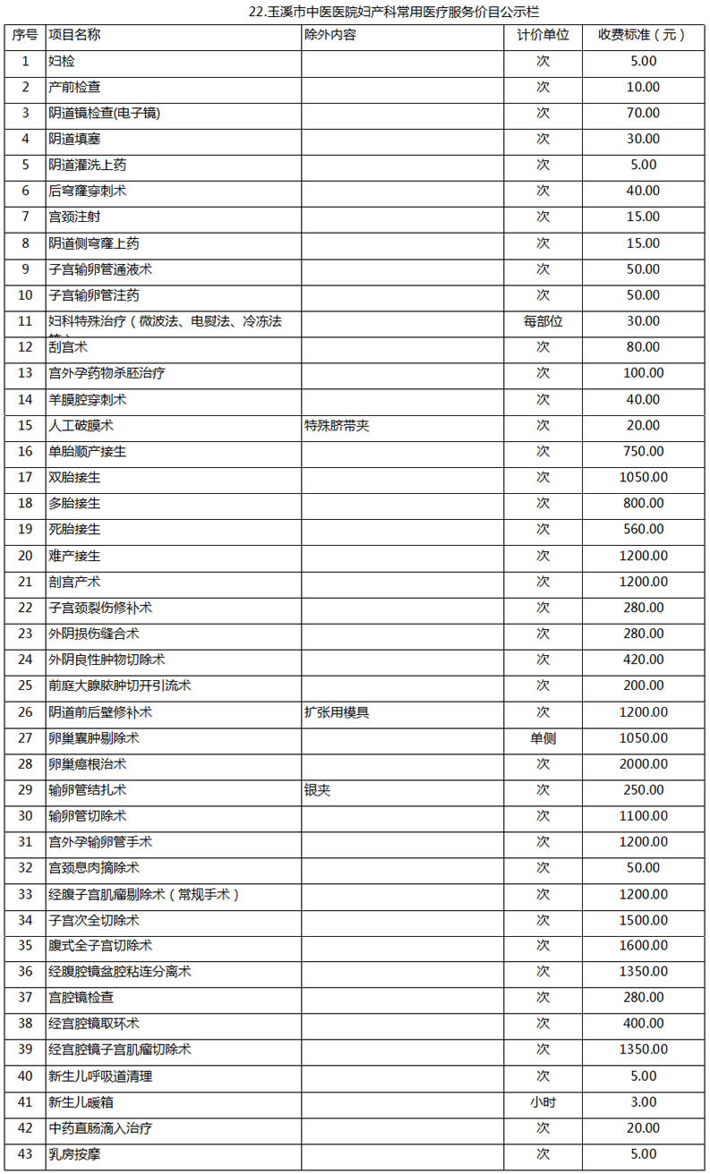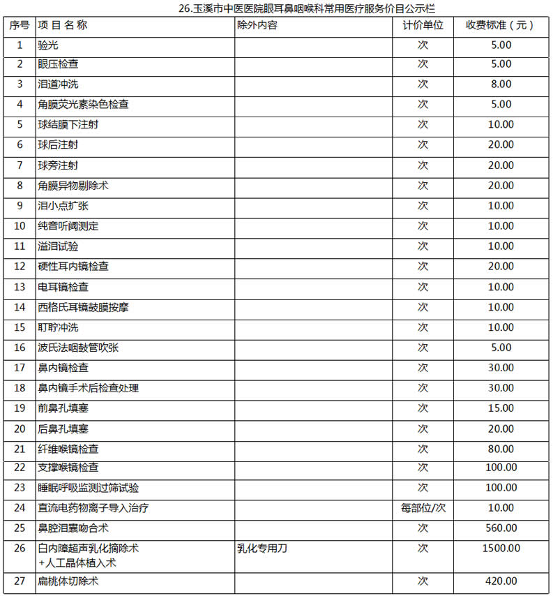玉溪市中醫(yī)醫(yī)院常用醫(yī)療服務價目公示